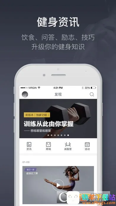 4、除训练视频和计划外,还会根据目标推荐合适饮食方案,并提供丰富健康营养资讯。