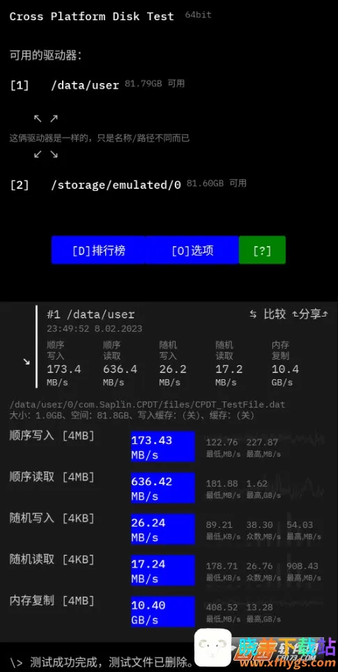 Cross Platform Disk Test特色显著。它支持多种磁盘测试模式,如随机读写、连续读写、随机写入等,能全面检测磁盘性能。可选择不同大小文件测试,模拟实际场景。提供详细性能统计数据与图表显示,涵盖IOPS、吞吐量、延迟等指标,助用户评估磁盘在不同负载下表现。还能对比不同存储设备性能差异,方便用户挑选最合适的存储介质,无论是检测手机存储,还是比较不同设备存储性能,都极具实用价值。