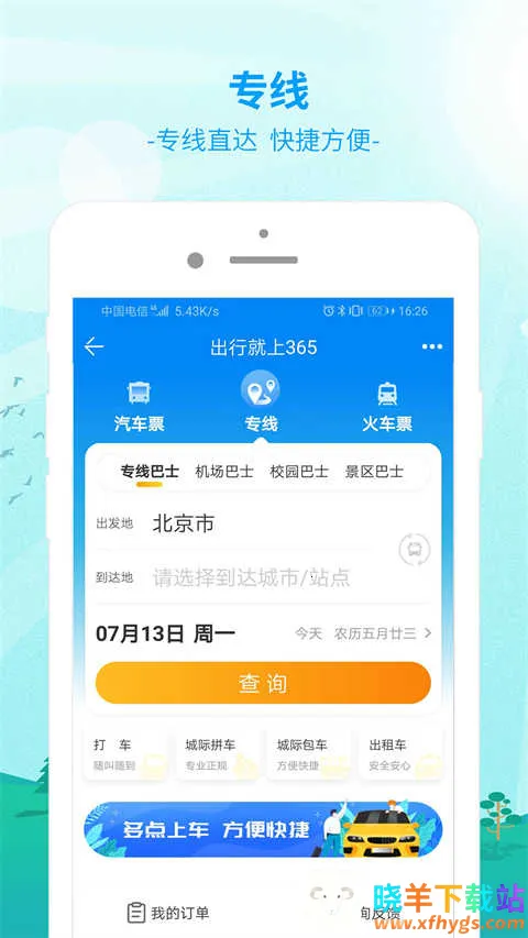 1、从本站下载安装365汽车票网上订票app,新用户需使用本人实名认证手机号完成注册与登录。