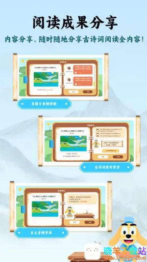 其功能丰富,支持随时阅读古诗词并拓展赏析;音频讲解方便查看语音内容实现背诵;能查看成长数据掌握学习进度;实时记录阅读学习过程和答题情况;还可分享阅读成果。绘本分类能满足不同年龄阶段需求。