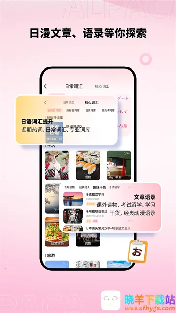 羊驼日语2026官方正版是湖南羊驼教育科技有限公司推出的日语学习软件。功能强大,有五十音学习、进阶课程等。特色是配音学日语、素材海量。还具备多种实用学习功能,助用户打好日语基础,高效提升水平。
