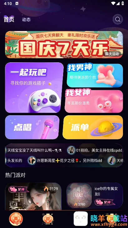 2. 丰富交友场景:有热门交友房间推荐,可参与其中互动;在热门列表能查看异性信息交流;动态广场可对各种动态展开交流,全方位满足交友需求。