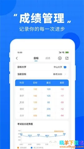 2. 可视化成绩分析与目标设置:提供可视化成绩分析,清晰了解学习情况,还能设置高考目标,高考倒计时助力全力冲刺。