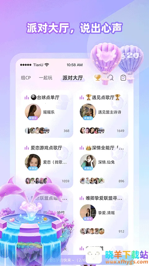 4. 派对大厅互动丰富:能在派对大厅找伙伴一起吃饭、看电影、聊天、玩游戏,告别孤单。