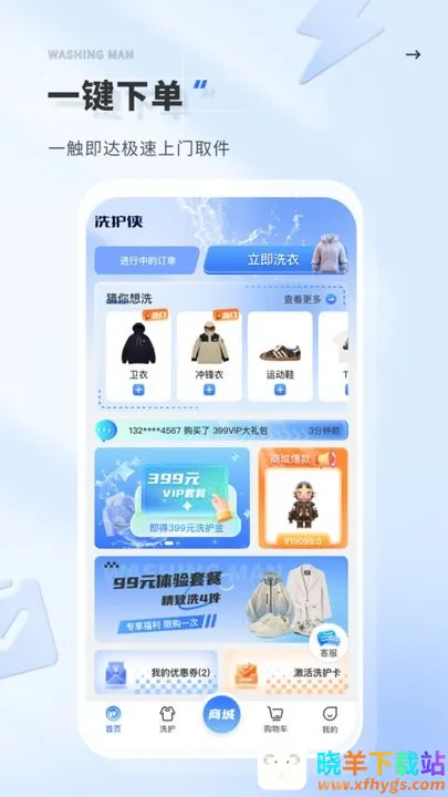 洗护侠最新手机版是浙江衣身衣事科技推出的一站式互联网洗护平台软件。手机一键下单,专业团队上门取送。有订单追踪、线上商城等功能,提供绿色环保服务,不定时发福利,还能洗多种物品,满足多样需求。