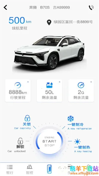 1. 专为奔腾车主打造,提供远程控制服务,可远程开关车门、空调,随时随地查看汽车状态,如时速、胎压、油量、电量等数据。