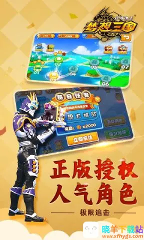 《梦想三国极限追击》是一款基于梦想三国IP正版授权开发的3D横版动作冒险游戏。玩家化身三国传奇英雄,为争夺梦想之力,在关卡中跳跃、消灭怪物、获取金币,通关提升角色属性。游戏场景简单清新,角色躲避障碍可加分。它将跑酷与格斗完美结合,有高清3D视觉和正版品质。炫酷机甲搭配三国剧情人物,颠覆传统设计。生动的背景音乐,带来热血沸腾的格斗跑酷之旅。新奇的怪物造型、原声配音音乐、酷炫打击特效,还有惊险刺激的关卡体验,各种原作设定带你进入梦想三国的神奇世界。如果你喜欢动作跑酷游戏,这款游戏值得一试,能让你沉浸在独特的三国跑酷冒险之中。