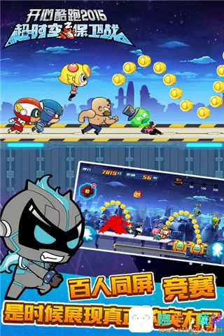 开心酷跑是一款根据同名动画改编的动作类酷跑手游。重现经典剧情角色,有全新玩法,能跳跃飞翔、躲避障碍等。可与邪恶超人对决,还有多种模式活动,破解版钻石无限、商城内购破解。
