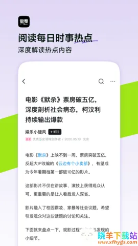 基于个性化推荐引擎技术,爱看会依据用户兴趣、位置等多维度进行精准推荐。这里不仅有狭义的新闻,音乐、电影、游戏、购物等资讯也一应俱全。其能根据社交、阅读行为及地理位置等挖掘兴趣,快速计算并更新用户模型。还会自动识别本地新闻推送给当地居民,也可依年龄、性别、职业等特征推荐感兴趣的资讯。