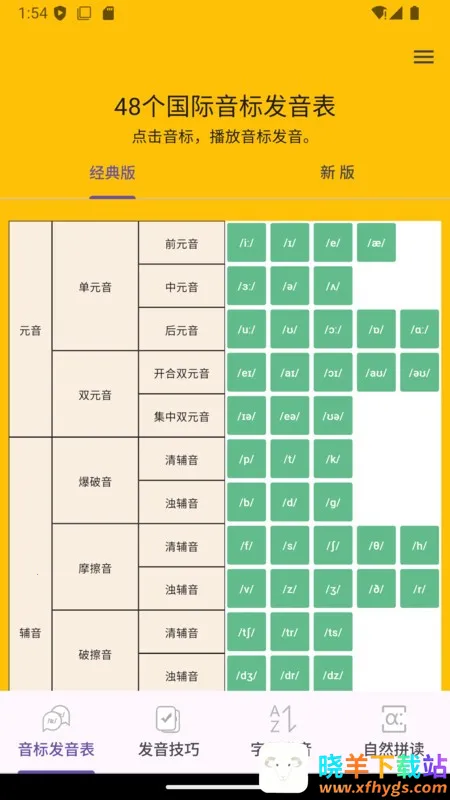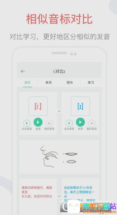 1. 真人发音超标准:软件收录48个音标,皆有标准真人发音,能让学习者感受最纯正的音标发音。