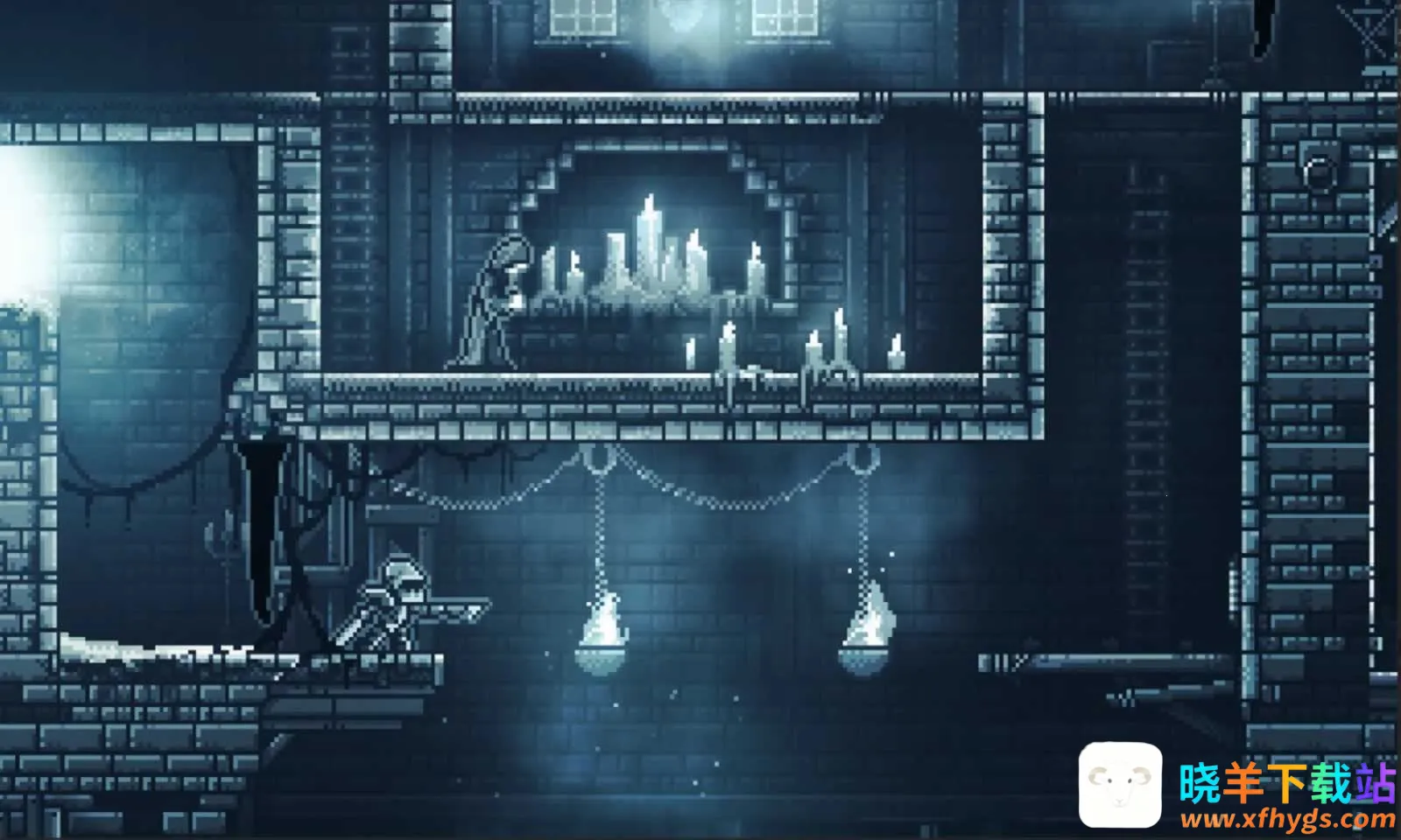 极渊是一款像素风剧情向解谜冒险生存游戏,玩家将切换女孩、流浪者等三个主角视角探索恐怖宅邸,在不同场景跳跃解谜、躲避陷阱、消灭怪物,通过视角切换推进故事,揭开世界背后的真相。