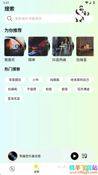 熊猫音乐暴走2026官方最新版本是一款免费音乐播放器,聚合全网海量资源,有智能搜索推荐、无损音质下载等功能。界面极简可个性化设置,多榜单实时更新,能满足高品质聆听、个性化发现及便捷管理等需求,获用户好评。