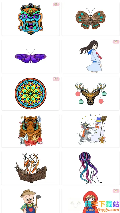 1、六大主题风格多样:覆盖萌趣动物、精致插画、人物肖像、自然植物、童趣卡通、几何对称六大主题填色风格,满足不同审美与创作需求。