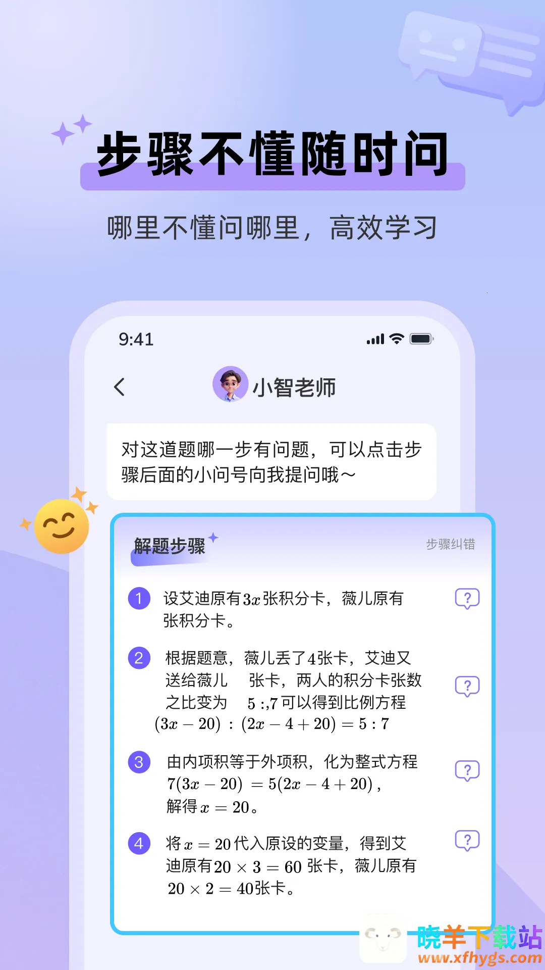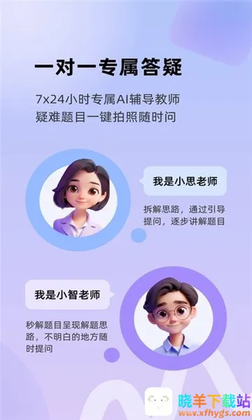 引导思考,个性化解答:根据具体问题提供个性化解答,让学生掌握原理。提供小思老师和小智老师两种讲解模式,小思老师逐步引导启发解题思路,小智老师拆解关键步骤,针对卡关学生高效解惑。