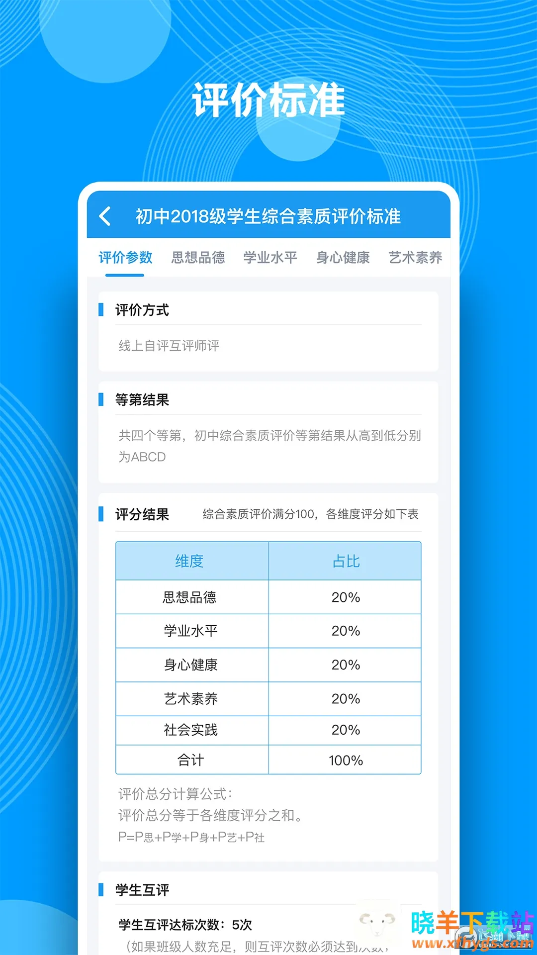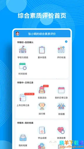 如果你想知道综合素质评价中身心健康部分怎么写,这款综合素质评价app能帮到你。它是一款超实用的手机移动综合素质评价管理服务软件。软件里有专门记录学生成长的各种功能,能方便快捷地记录日常信息。在身心健康这方面,你可以通过它清晰了解评价参数和各类评价方法。它能让你随时随地记录成长点滴,汇总成综合素质档案。比如你参加的体育锻炼、心理健康活动等都能记录下来。教师可关注学生成长动态,家校互动,审核档案填写评语发布结果等。有了它,你能轻松看到自己的详细档案内容,了解自己在身心健康方面的评价情况,还能在线查看学业成绩、体测结果等,为综合素质评价提供全面且准确的参考,让你更清楚自己在身心健康维度的表现,助力你更好地成长。