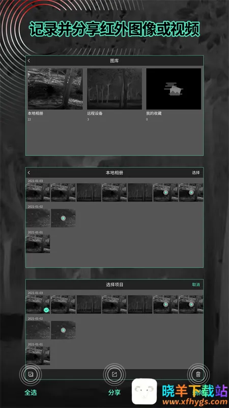 TargetIR是一款专为夜间观察设计的强大工具,通过集成红外热成像技术,能在户外探险、搜索救援、夜间巡逻等场景提供前所未有的视野。它与设备无缝连接,借助Wi-Fi让用户在任何地点轻松访问热像仪内容,支持拍照录像及分享到其他应用平台。软件特色众多,比如能实时红外画面远程观看,无论在哪都可与他人分享精彩;有高清画质与多倍放大效果,助您清晰捕捉远处目标;具备智能亮度调节,低光环境也能确保图像清晰;还有手电筒功能,提高夜间行进安全性。其亮点也十分突出,全功能传输与控制操作便捷,自动适配不同设备无需额外设置,一键分享方便快捷。优势更是显著,能实时获取红外热成像图像和视频,支持图像和视频编辑、数据分析,还具备直播功能。总之,它是一款能满足多种场景观察需求的全能夜视辅助工具。
