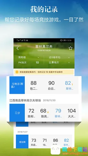 4、成绩记录与分享:帮你记录每场竞技游戏,成绩一目了然,还能轻松分享打球成绩单和好友成绩单。