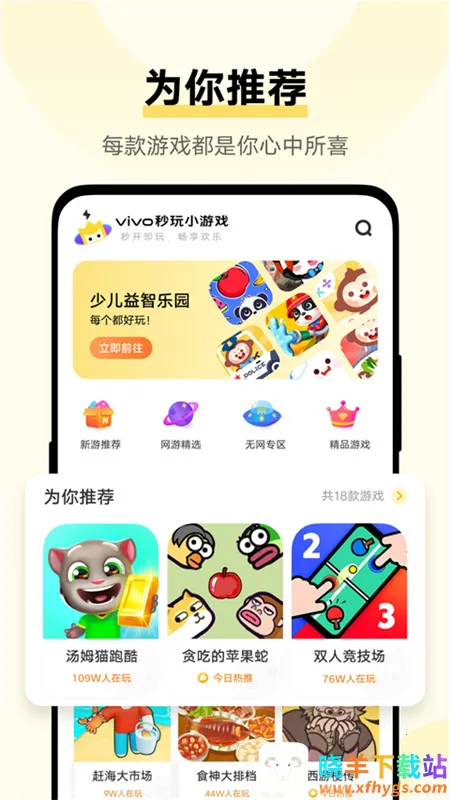 想立即打开秒玩小游戏入口?这款软件超适合你!它是由VIVO出品的休闲软件,无需登录,点击即玩,超方便。这里有海量游戏资源,数千款热门小游戏涵盖多种类型,无需下载安装,节省时间和手机存储空间。还能根据用户喜好和热度智能推荐最新最热游戏。支持游戏内好友互动、排行榜挑战,增添竞技性和趣味性。软件官方正版,稳定安全,给你优质体验。想兑换免广告特权也不难,在首页找到福利,点击兑换即可,做任务还能获取金币。有了它,空闲时间不愁没事干,随时随地打开就能玩,轻松打发时间,各种好玩小游戏等你来畅玩!