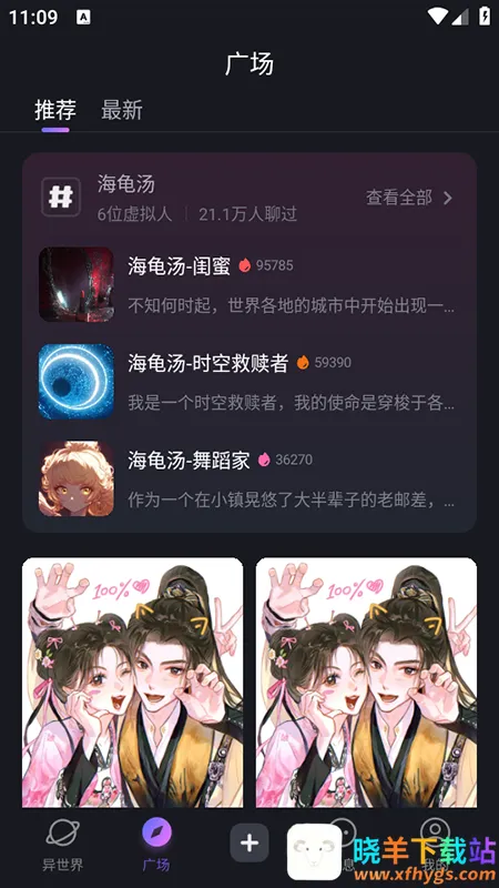 3.在“广场”板块,可查看他人分享的互动内容,也可发布自己与虚拟人的专属回忆。