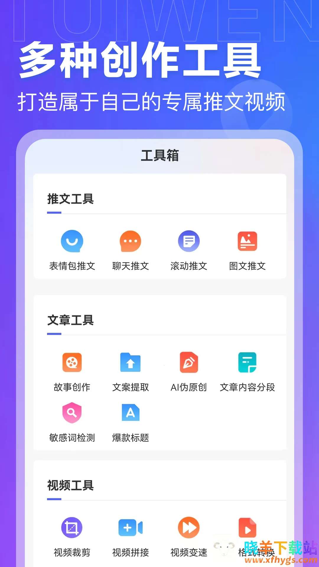 1. 创作链条完整:整合推文创作文案处理、视频编辑、AI绘画等多种功能,满足多样化需求。