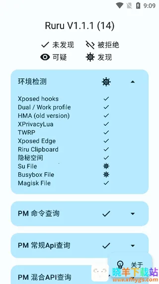 想知道你的手机运行状况如何吗?ruru环境检测软件就能帮到你!它体积小却功能强大,动动手指就能对手机各模块进行检测。无需root权限,完美兼容不同类型手机。打开主页,有很多检测内容,操作简单,就像傻瓜式操作一样。它能详细分析每个应用性能,包括资源占用、运行状态等,帮你识别并优化高耗能应用。检测结果会提供量身定制的优化建议,提升手机性能,延长电池寿命。一旦发现应用有问题,比如运行滞后、资源消耗大或有安全隐患,系统会立即预警。它还能检测Root权限、Xposed框架等,确保手机安全。而且检测App无广告,让你专注检测和优化。有了它,轻松了解手机运行环境,解决各种麻烦,快来试试吧!