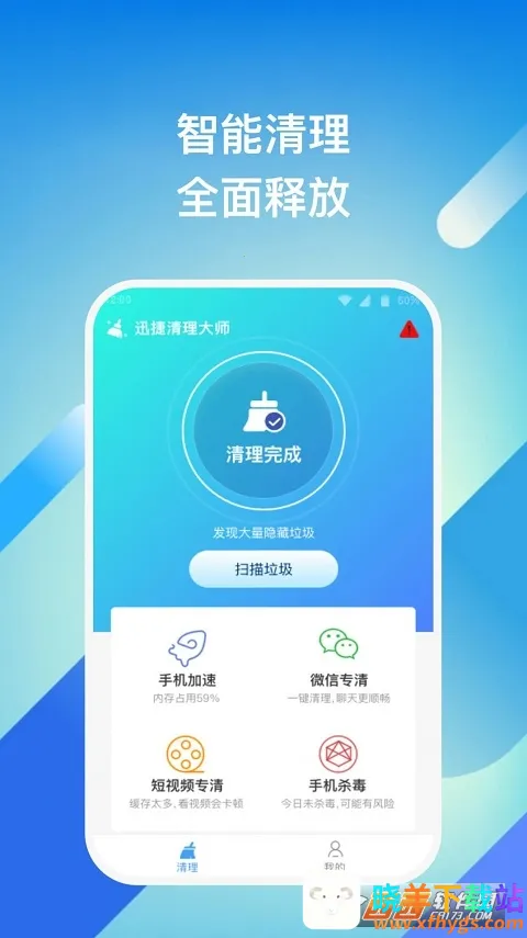 迅捷清理大师是一款专为移动设备打造的垃圾清理工具。功能强大,能一键扫描清理各类垃圾,按分类整理,还支持自动清理。可扩大手机内存、查杀病毒、手机加速、省电等,保障隐私安全,提升运行速度。