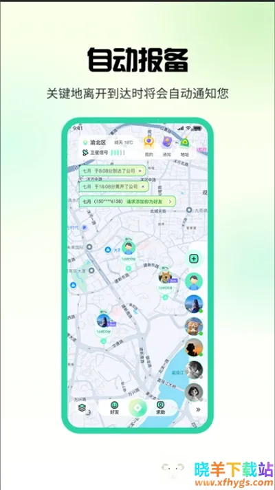 4. 设有电子围栏,一键设置后,好友离开或到达指定位置会智能提醒,随时了解动态。