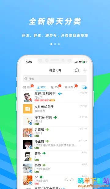 2、点击好友,全新聊天分类
