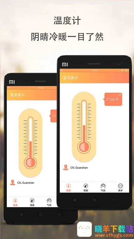 温湿度计2026官方正版是一款专为关注生活环境品质用户设计的应用。能实时监测温湿度、气压,通过手机传感器高效提供数据。界面直观,精准度高,支持多模式切换,无广告无后台,适用于多类安卓设备,还增加了未来预告等功能。