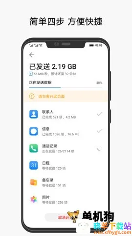 1、操作简单便捷:无需连接电脑,摆脱数据线束缚,也无需注册登录,只需一键就能完成数据迁移,新旧手机安装后即可使用,不受品牌和系统版本限制。