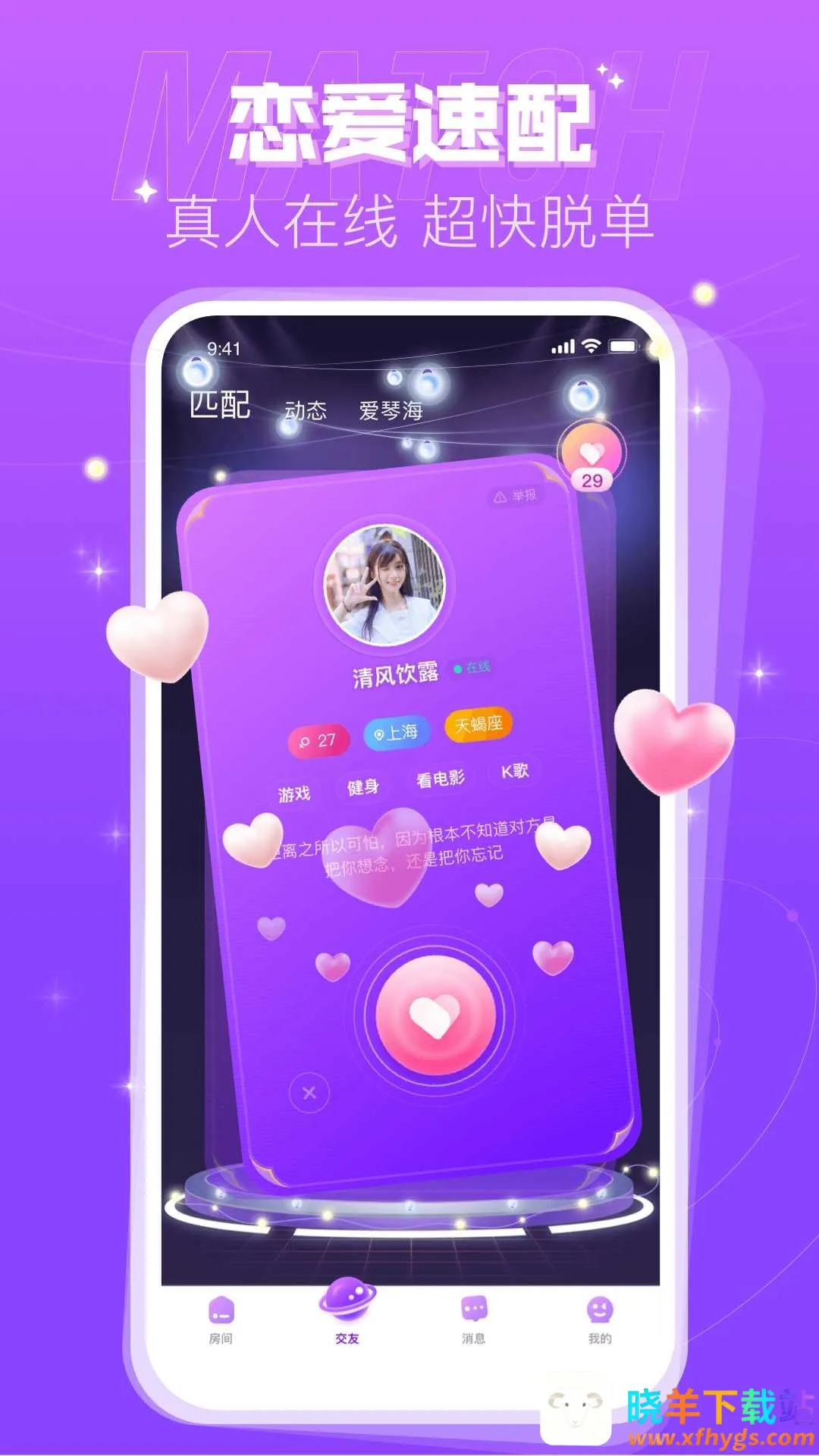蜜趣交友专注年轻人社交,能帮用户拓展社交圈,结识志同道合的朋友。它能满足多样化需求,无论是找聊天伙伴、参与兴趣小组还是拓展人脉。其界面设计简洁清新,操作流畅,用户体验友好。定期举办线上活动,增加互动机会。强调真实交友,采用实名认证机制,提升可信度。支持多语言切换,适合不同地区用户,扩大交友范围。免费下载使用,部分高级功能可内购解锁。凭借多样化交友方式和贴心功能设计,吸引大量年轻用户。虽部分高级功能需付费解锁,对预算有限用户不便,但总体是值得尝试的社交工具,很适合喜欢探索新鲜事物的年轻人。