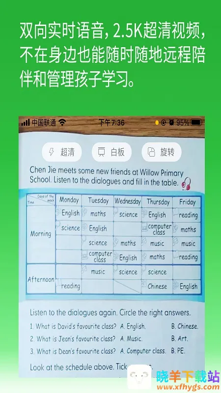 2、亲子辅导便捷:实现作业亲子陪伴,有高清图像传输,双向语音沟通流畅,能在线答疑、搜题,让辅导轻松。