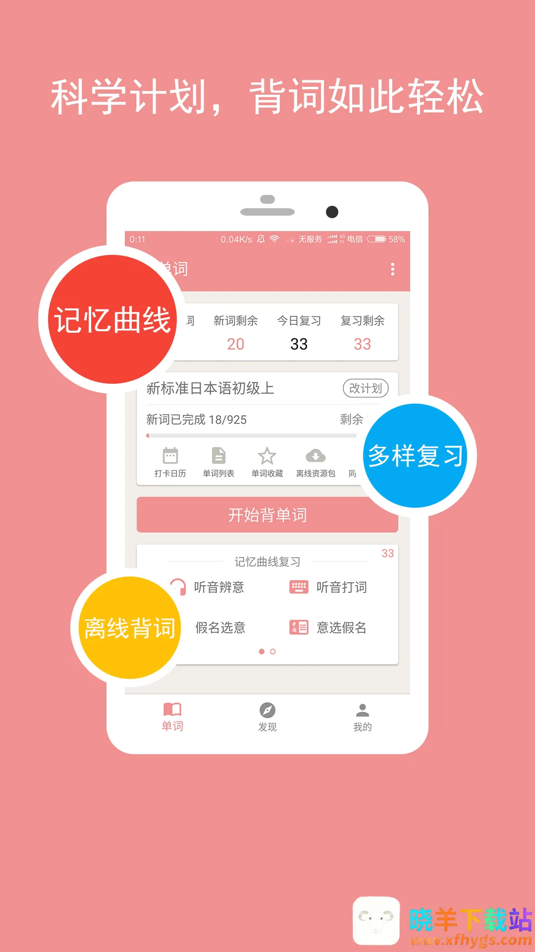 2. 支持日语单词背诵测试,能及时检验学习效果,通过多种复习模式,如听音辨意、假名选意等,攻克单词遗忘难题。