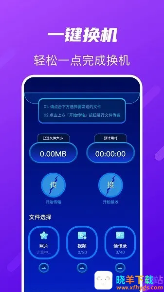 它的功能十分强大。不限机型,新旧手机安装后就能直接用,不受品牌和系统版本限制,换机轻松无压力。无需连接电脑,通过无线传输,在手机间就能快速传数据。不管是通讯录、联系人、照片还是视频,都能一键传输,操作简单便捷。而且采用手机直连极速传输技术,资源互传零消耗手机流量,还安全可靠,两机仅面对面互联传输,充分保护隐私。