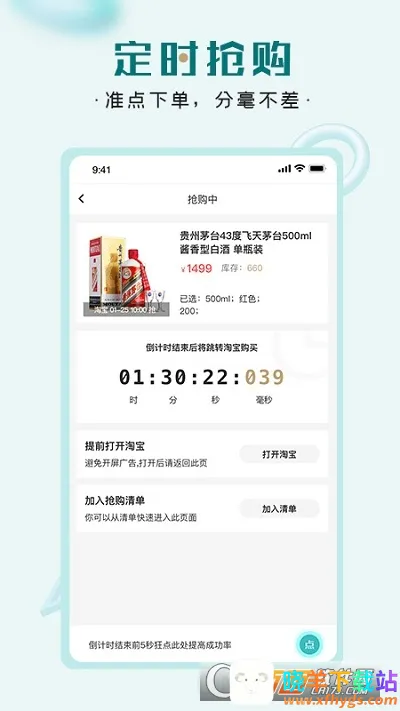 快快抢特色满满!它提供抢购清单,提前配置,随时抢购,告别慌乱。安卓版有自动下单功能,跳转自动下单,提交锁定库存,提升成功率。还聚合多平台秒杀商品,像飞天茅台、热门手机、潮鞋潮玩等一网打尽。基于各平台时间,提供毫秒级低误差跳转,快人一步下单。而且界面简洁易用,不懂技术也能轻松上手,无论是抢购热门好物还是日常购物比价,都能轻松搞定,让你购物省心又高效!
