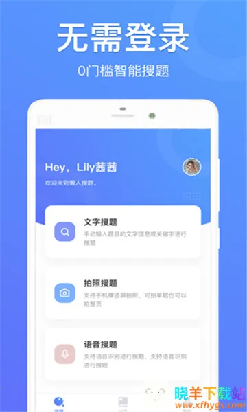 懒人搜题是一款无需权限登陆的全网搜题工具,支持语音、拍照搜题,有海量题库,覆盖多平台2000万题目,答案经专业老师校对解析,准确率高,能提高学习效率,助力学生解决难题。