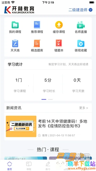 开林云课堂2026是开林集团打造的在线教育平台,提供建筑、财经、医学等多领域课程。有海量题库、真题练习,名师直播教学,押题准通过率高,支持课程缓存,助用户高效备考,随时随地学习。