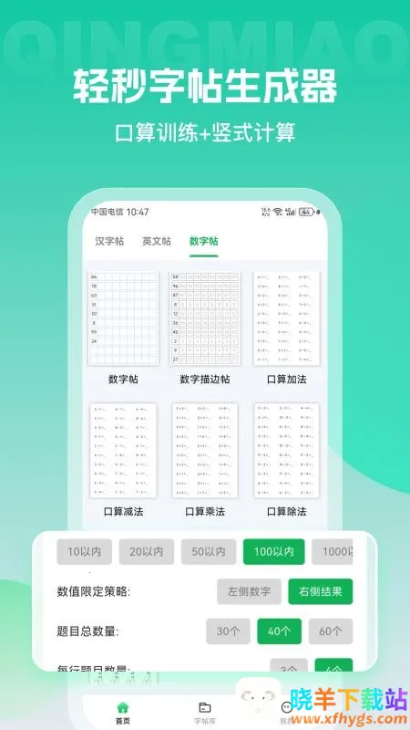 4. 多种练习模式:助力用户多样化练习,提升书写能力和基础运算水平。