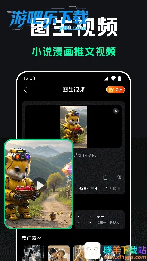 1. 创作轻松:无需复杂技术,输入关键字等素材,就能快速生成视频或画作,即使无剪辑技术的用户也能创作各类视频。