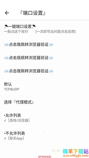 3. 进入端口设置,先用”一键端口设置”,按提示做浏览器验证。