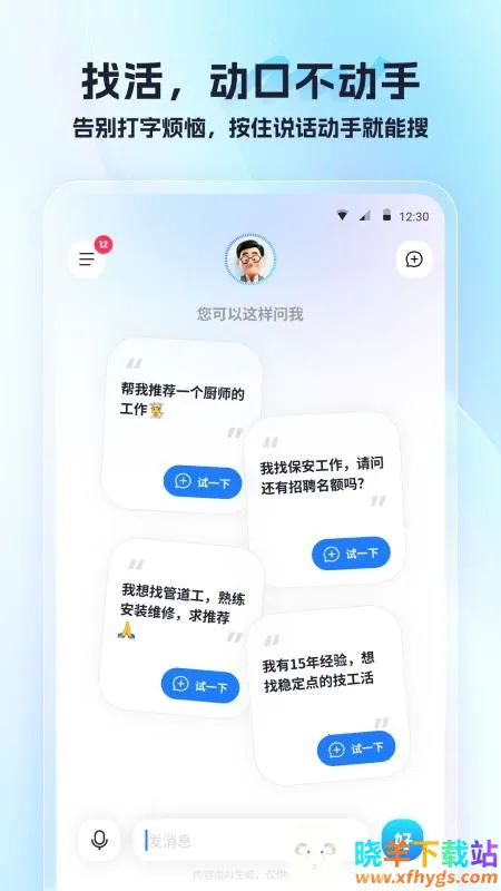 4. 智能找活:支持智能语音输入,帮助用户更好地提问找活,使用更便捷。