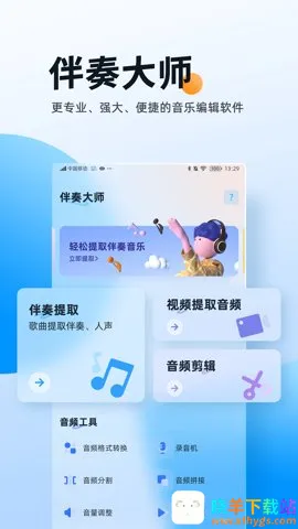 伴奏大师2026最新版本特色满满。它支持将视频转换成音频,借助先进人工智能算法精准分离人声与背景伴奏,生成两段不同音频文件。拥有音量调整功能,可随意放大或缩小音频音量,更好处理手机音频。还具备录音机功能,适用于多种场合,轻松记录声音。此外,提供淡入淡出、音频剪辑、拼接等多样功能,方便用户灵活编辑音频文件,操作简单,超多功能免费使用,能轻松满足各种音频处理需求。
