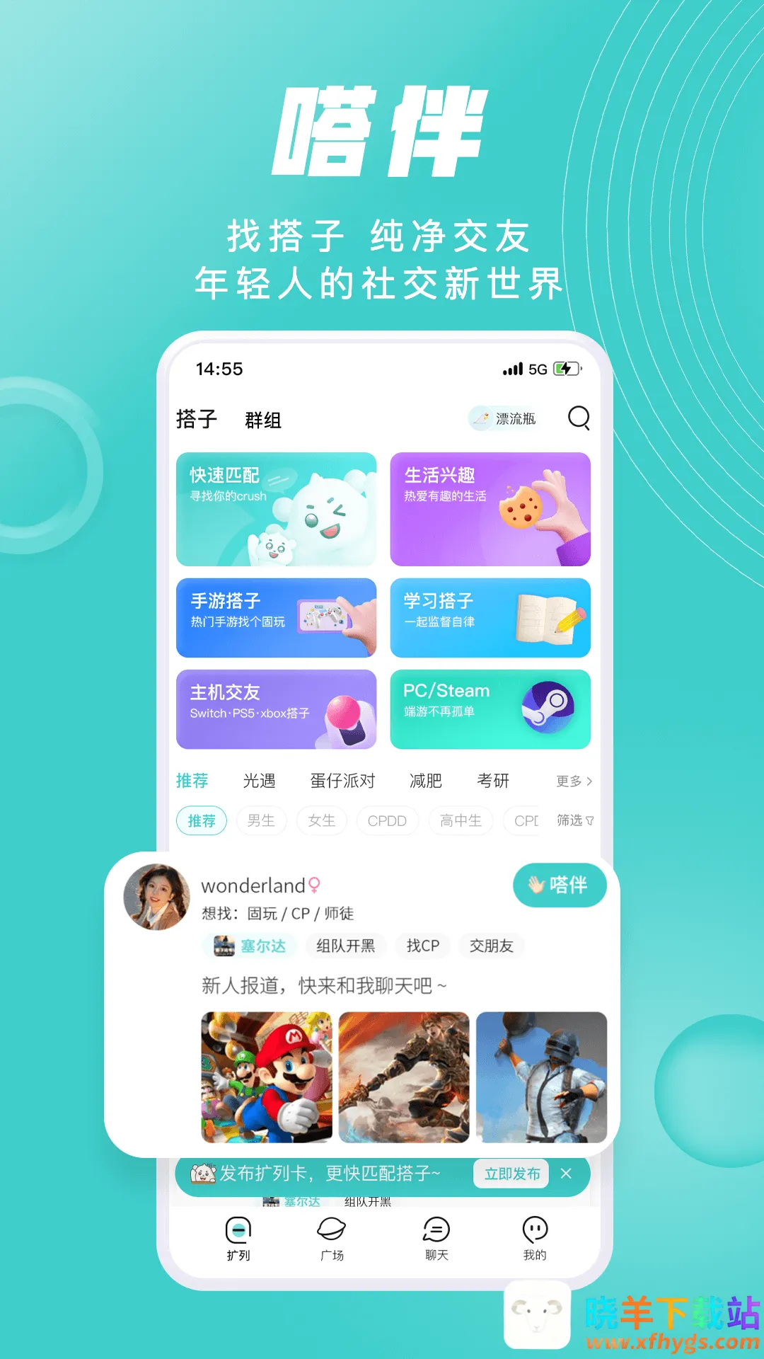 2. 强场景:学习搭子、游戏搭子、生活搭子分类清晰,一目了然,避免聊不投机的尴尬,提高社交效率。