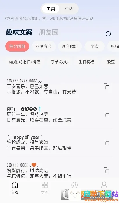 智绘文案是一款出色的文案创作工具。它拥有丰富多样的特色,能满足不同用户需求。**内置多种文案模板**,涵盖节日祝福、旅游、日常、营销等,让文案创作不再烦恼。其人工智能系统强大,可快速生成原创文案,如朋友圈、短视频脚本、广告文案等。不仅如此,还提供有趣的颜文字组合等文案。九宫格拼图工具实用,系统自动推荐最佳排版方案。模板内容持续更新,紧跟网络热梗与流行风格。支持跨平台分享,操作简单方便,能快速生成有效文案,提高效率,是文案创作的得力助手。