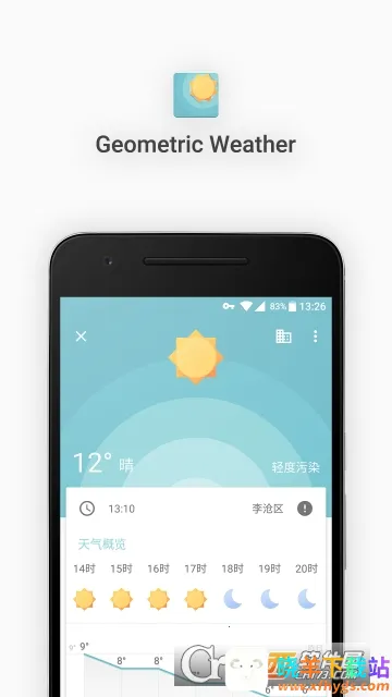 几何天气是简洁专业的手机天气预报应用,能查未来15天天气及24小时内多项气象信息,支持全球所有城市。功能强大数据可靠,界面美观操作简单,无广告干扰,还提供天气通知、多种桌面widget等。