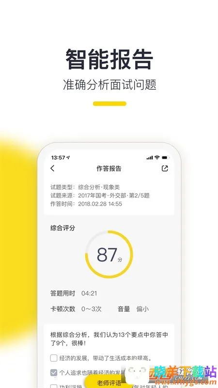 智能报告:能准确分析面试问题,让你清楚知晓自己的优势与不足,明确改进方向。