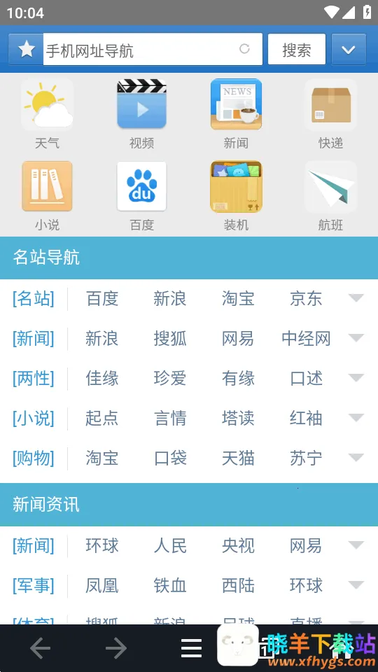 2、进入软件首页后,可以看到很多名站导航,点击即可前往。