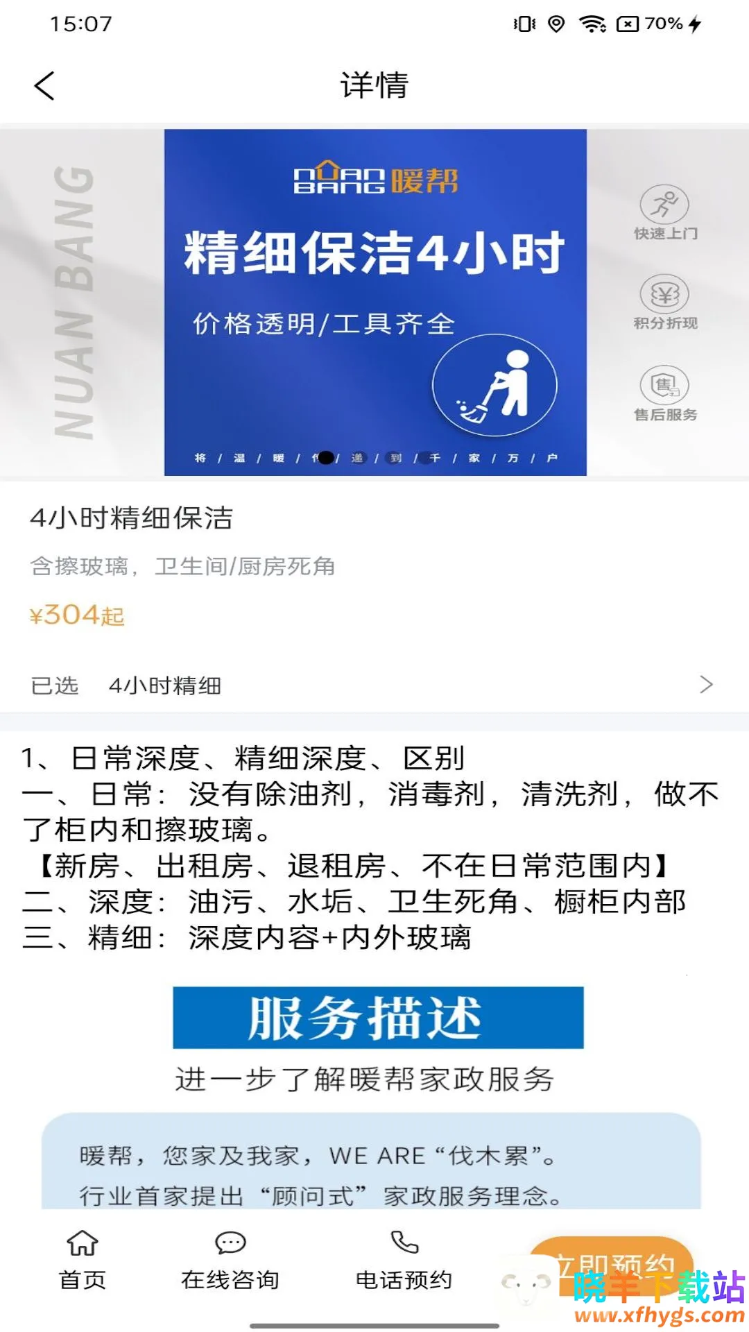 暖帮安卓版是一站式家政服务平台,整合维修、清洁等全方位生活服务。精细分类项目,可随时预约,追踪订单进度。有智能计价、严格筛选人员等特色,服务响应快,还有双向评价等优势,功能丰富,值得信赖。