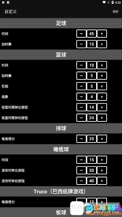 虚拟记分牌最新手机版是一款实用的手机记分工具,摒弃纸笔记分。支持篮球、足球等多种运动,能统计分数、计算时间犯规次数,有模拟真实计分牌显示、可导出报表等功能,方便管理比赛分数。