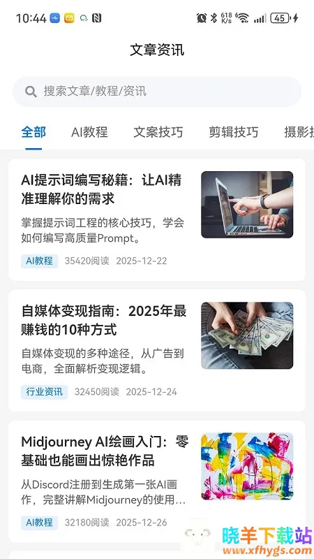2. 精选优质文章、AI提示词库、精美图片素材及丰富创意模板,助用户快速获灵感,提升创意表达能力。